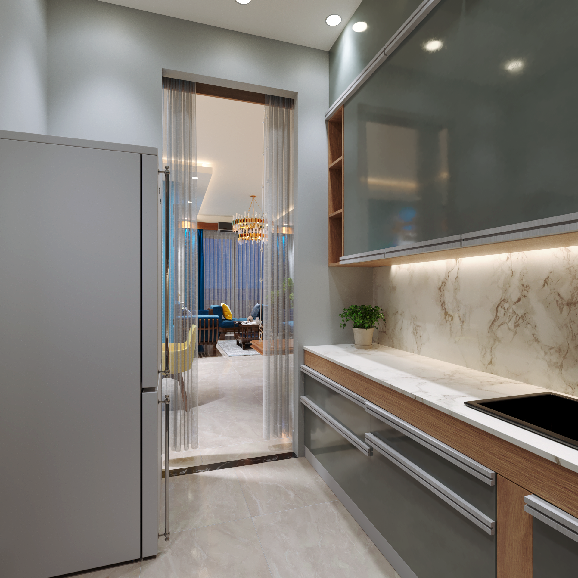 'Shades' is a testament to the transformative power of design. The once traditional living room was elevated with a striking dark blue accent wall, creating a sophisticated ambiance. The kitchen underwent a complete overhaul, featuring sleek white granite countertops and warm wood accents for a contemporary yet inviting feel. The children's rooms were reimagined as versatile spaces that catered to their evolving needs, blending functionality with style. The master bedroom, though constrained by its architecture, was optimized with a pristine white wardrobe that became a focal point of tranquility. The dance studio, a highlight of the project, was transformed into a magical space with hidden ceiling lights, creating an ethereal atmosphere for the young dancer.